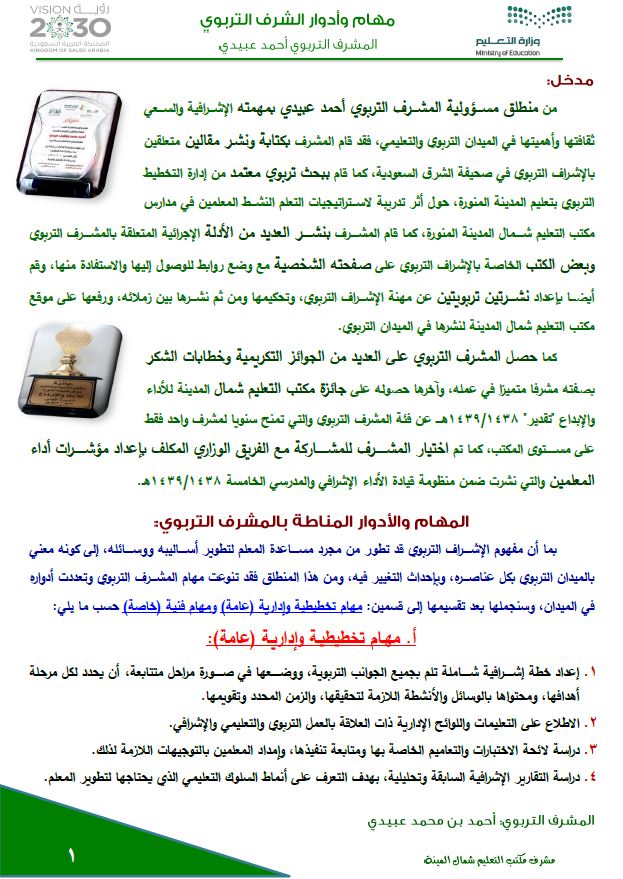 أ أحمد بن محمد عبيدي أدلة الإشراف التربوي و مهام المشرف التربوي